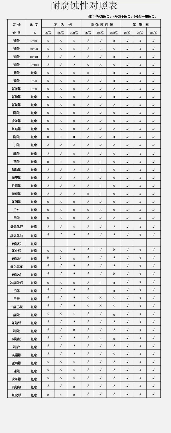 您现在的位置:制氧机-制氮机-计量泵-加药装置-液压隔膜计量泵-杭州莱纳斯工业设备有限公司>耐腐蚀性对照表